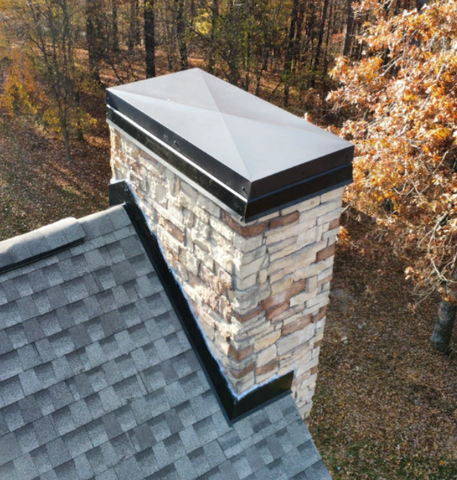 To finish the job, we used black flashing and a new black chimney cap, carefully selected to complement the roof color and maintain the overall aesthetic of the home. The result was not only a watertight solution, but one that preserved the beauty that made the chimney appealing in the first place.