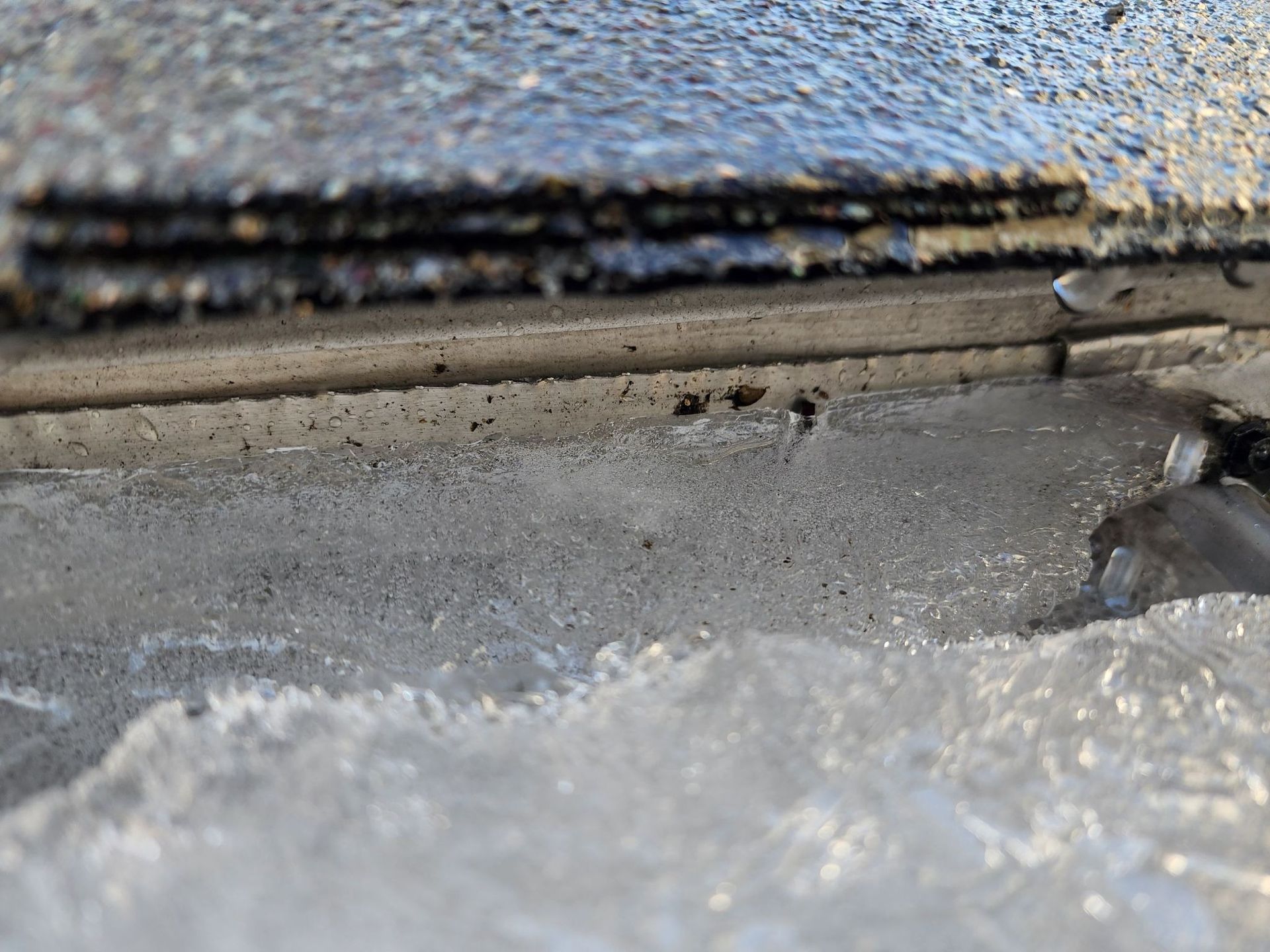 Ice starts as water. When water enters a tiny opening and freezes, it expands. Over repeated freeze-thaw cycles, small gaps can turn into serious roof decking damage. - Watch for leaves in roof valleys